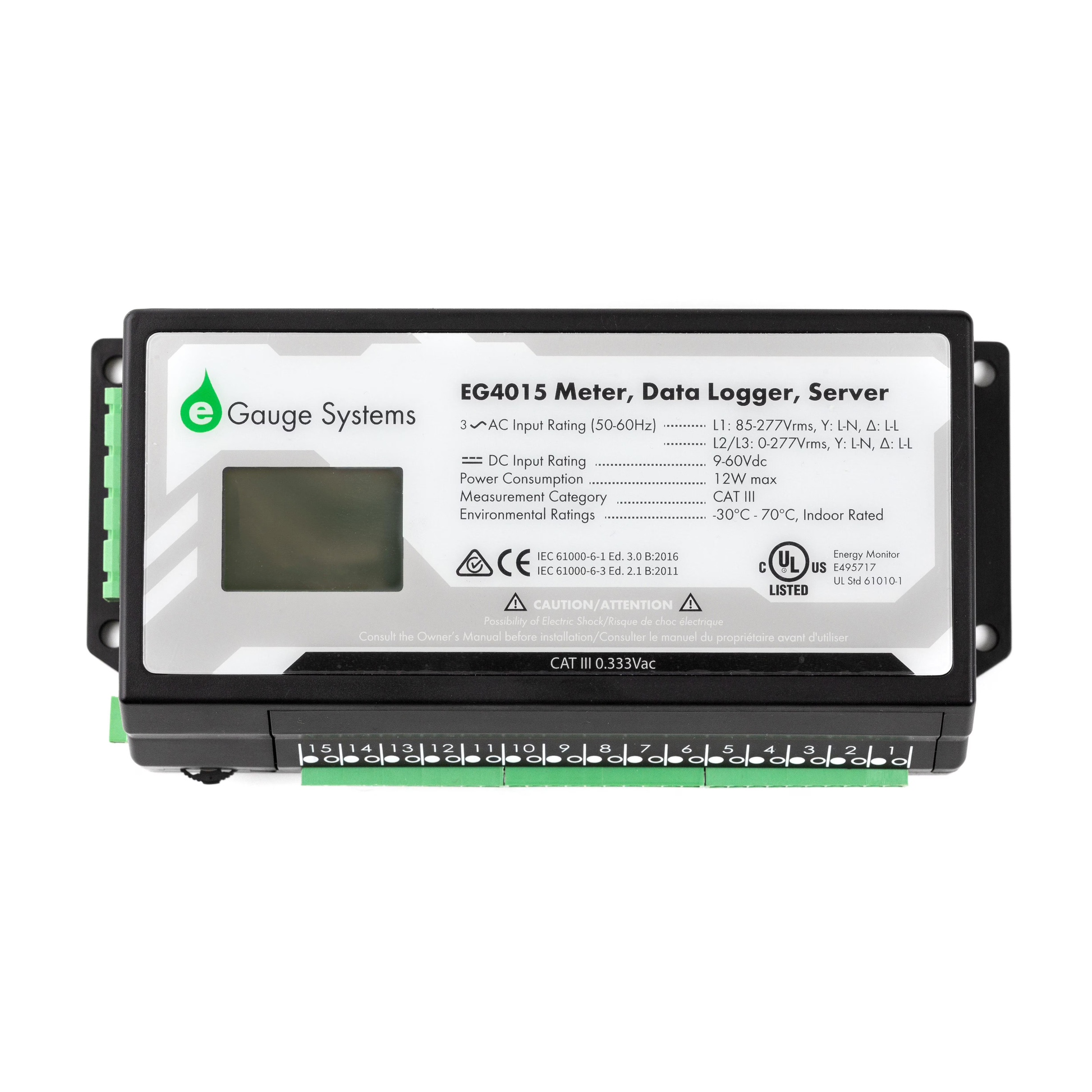 The eGauge Core is a 3-in-1 (meter, data logger, and web server), 15 channel multi-circuit smart energy meter designed for high accuracy energy monitoring applications. It is natively compatible with up to 3-phase 277/480 Vac and 6900 A (higher voltages with optional voltage sensors).